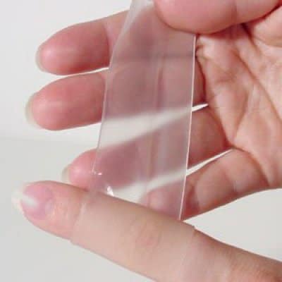 Io uso due pezzetti di cerotto di silicone per cicatrici. Non contiene colla, si stacca facilmente ed e' riutilizzabile piu' volte.